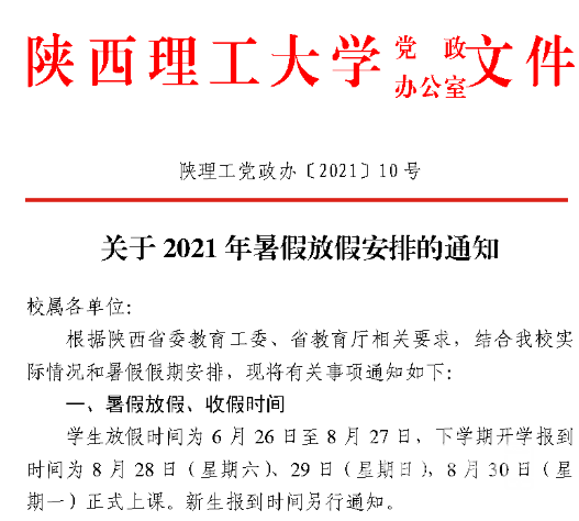 陕西大学2021年暑假时间