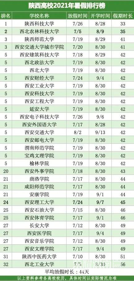 2021陕西高校暑假时间排行榜出炉!最长63天,快看看你家 ...